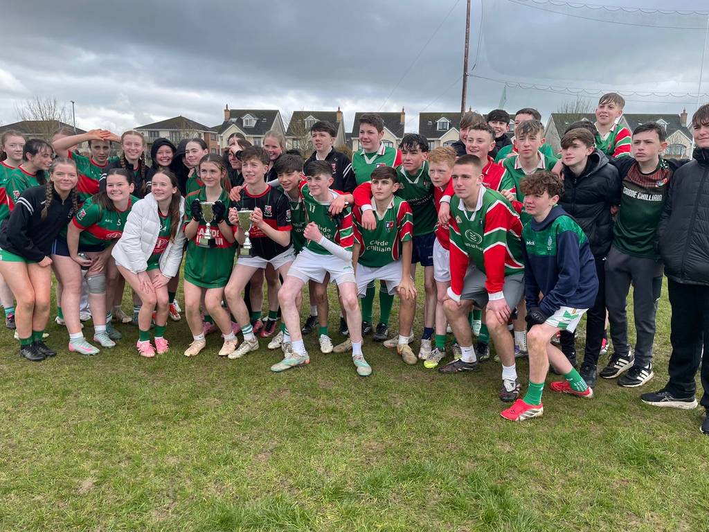Comhghairdeas le gach duine a ghlac páirt, thaispeáin siad scileanna peile den scoth,ach níos tabhachtaí bhí obair foirne, deabheasaí agus cairdeas dá chéile léirithe i rith an lae. Mhol na múinteoirí go mór iad! Dár ndóigh bhí áthas an domhain orainn mar ghlac foireann na gcailíní agus foireann na mbuachaillí dha chorn abhaile leo. Coláiste Chilliain abú!