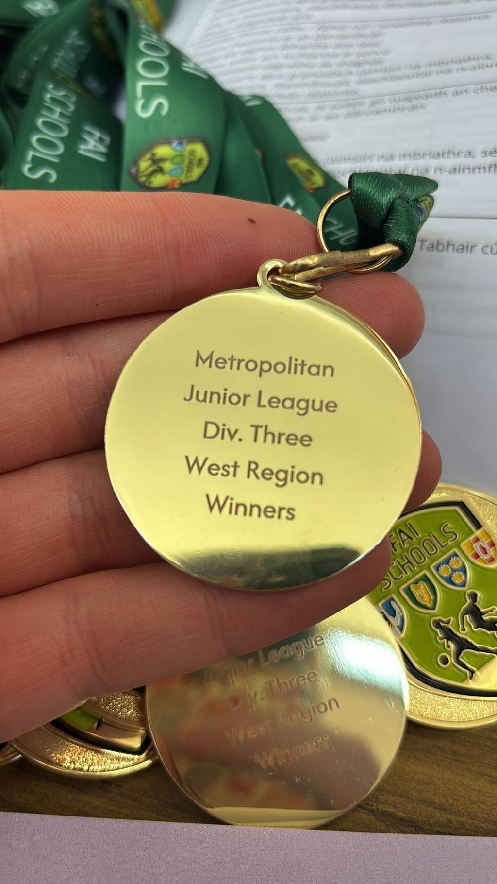 A huge congratulations to múinteoir Ben and the Under-17 soccer team on their fantastic achievement! They succeeded in winning the  Metropolitan Junior League, Division three, Western Region final with an outstanding performance against St. Aidan’s.