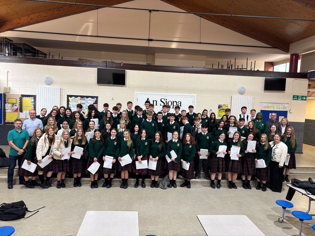 Comhghairdeas mór ó chroí le daltaí na hIdirbhliana a fuair torthaí na Sraithe Sóisearaí inniu. Táimid thar a bheith bródúil astu agus ba chóir dóibh a bheith chomh bródúil astu féin freisin. Buíochas ollmhór freisin lena gcuid múinteoirí.